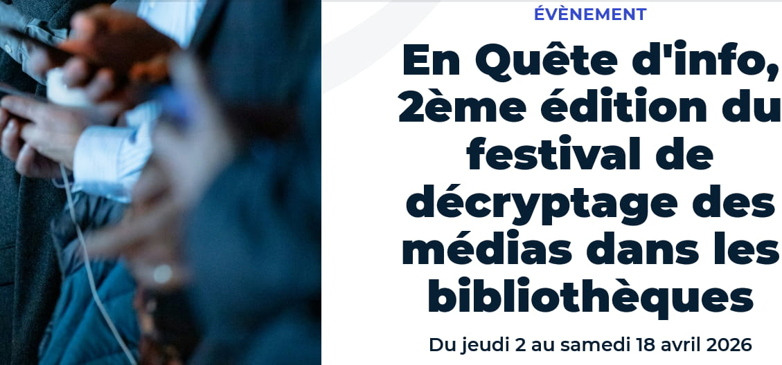Le festival de décryptage de l’information et d’éducation aux médias du réseau des bibliothèques de la Ville de Paris revient pour sa 2e édition du 2 au 18 avril 2026 autour de la thématique « S’informer en post-vérité ». Débats, rencontres, ateliers et spectacles seront proposés et témoigneront du rôle des bibliothèques dans l’égal accès de toutes et tous à l’information.