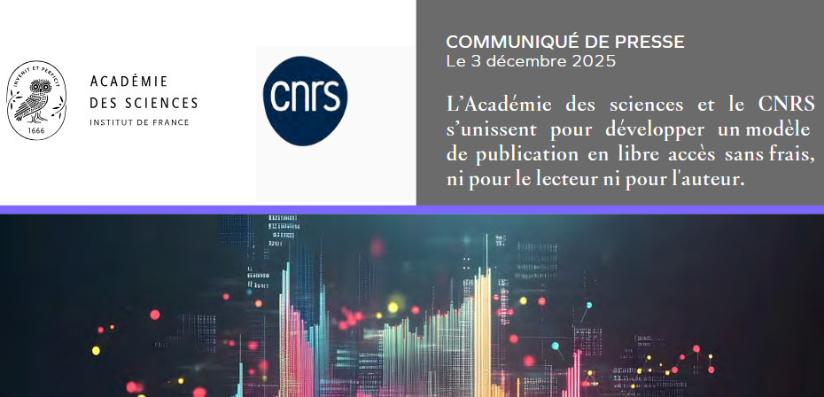 L’Académie des sciences et le CNRS ont signé un accord de coédition pour développer un modèle de publication scientifique en libre accès diamant, gratuit pour les auteurs comme pour les lecteurs. Cette initiative vise à proposer une alternative face à la dépendance croissante du monde de la recherche envers des éditeurs commerciaux. Académie des sciences, le 3 décembre 2025.